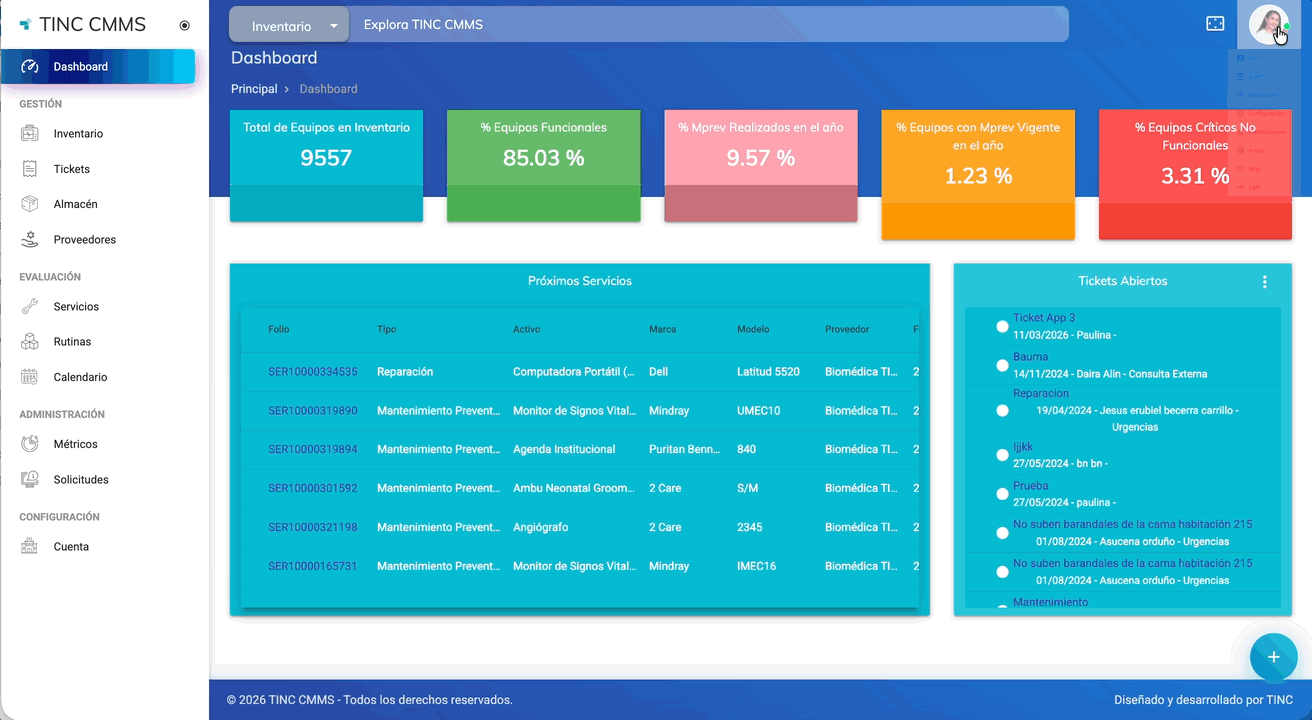 Paso 1. Inicia sesión en tu cuenta de TINC CMMS IS.