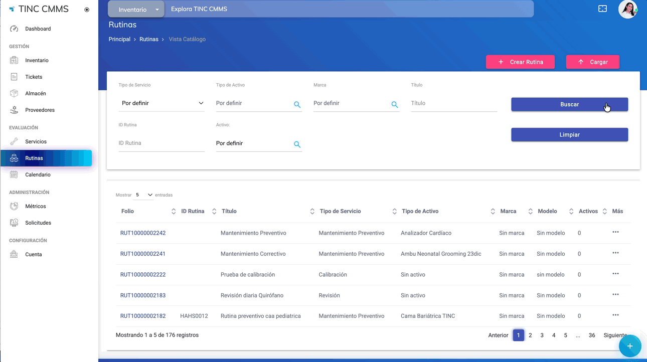 Nota: De manera adicional, se puede indicar que la rutina no cuenta con un activo, marca y/o modelo asociado, según aplique.