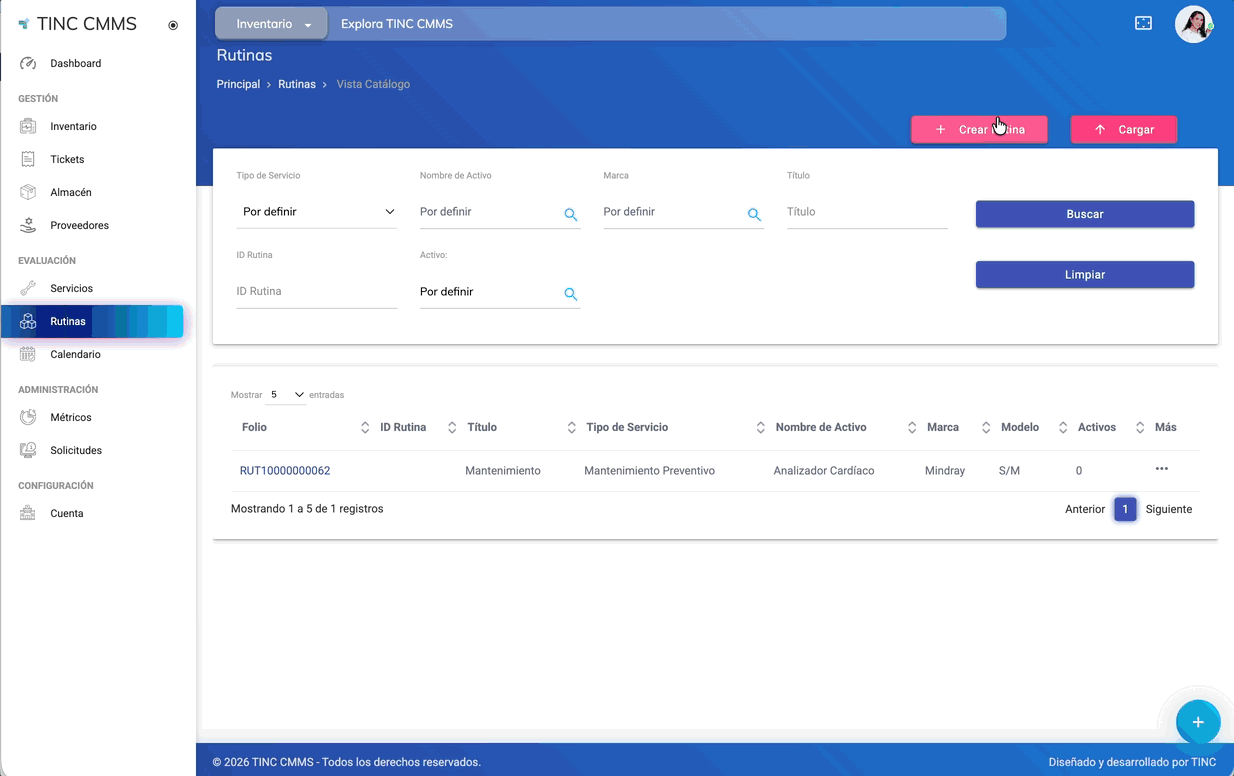 Si la rutina está vinculada a un equipo, tipo de mantenimiento o plan preventivo, esas relaciones dejarán de existir al eliminarla.