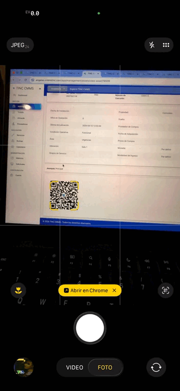 Paso 1. Escanea el código QR del activo desde un dispositivo con cámara y acceso al navegador (celular o tableta).