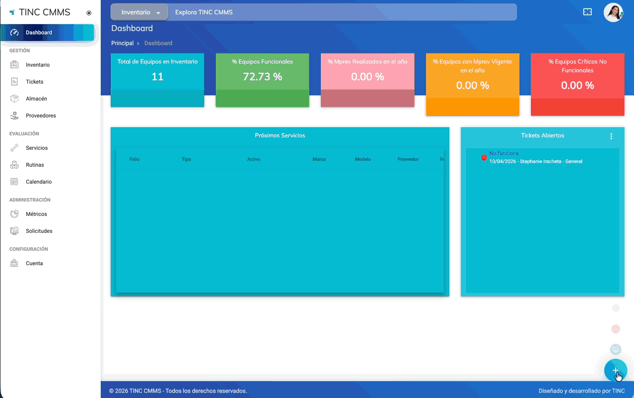 Crear servicios en TINC CMMS IS permite definir las actividades. Esto facilita la estandarización de procesos técnicos y mejora el control operativo sobre las actividades realizadas al equipos.