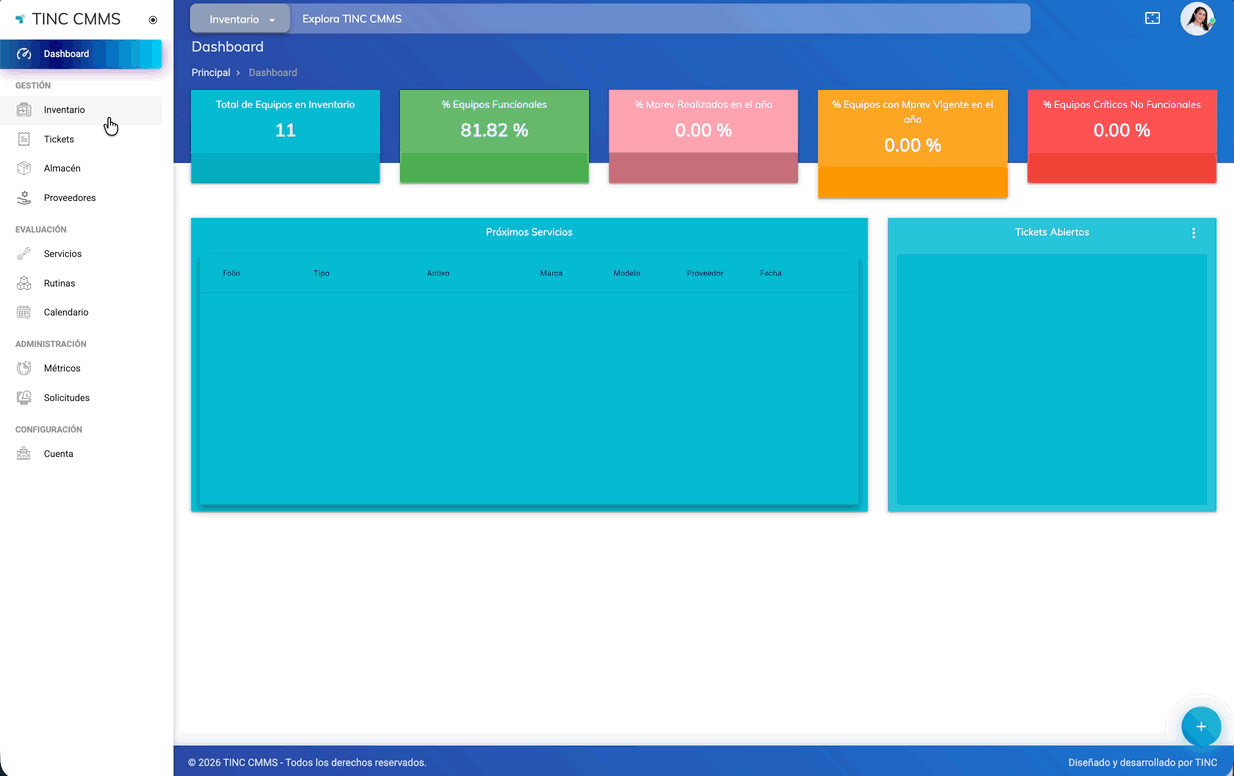 Paso 1. Inicia sesión en tu cuenta de TINC CMMS IS.
