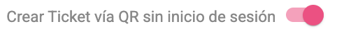 Cuando esté rosa, la función está activada y podrás crear tickets vía QR sin necesidad de usuario o inicio de sesión.