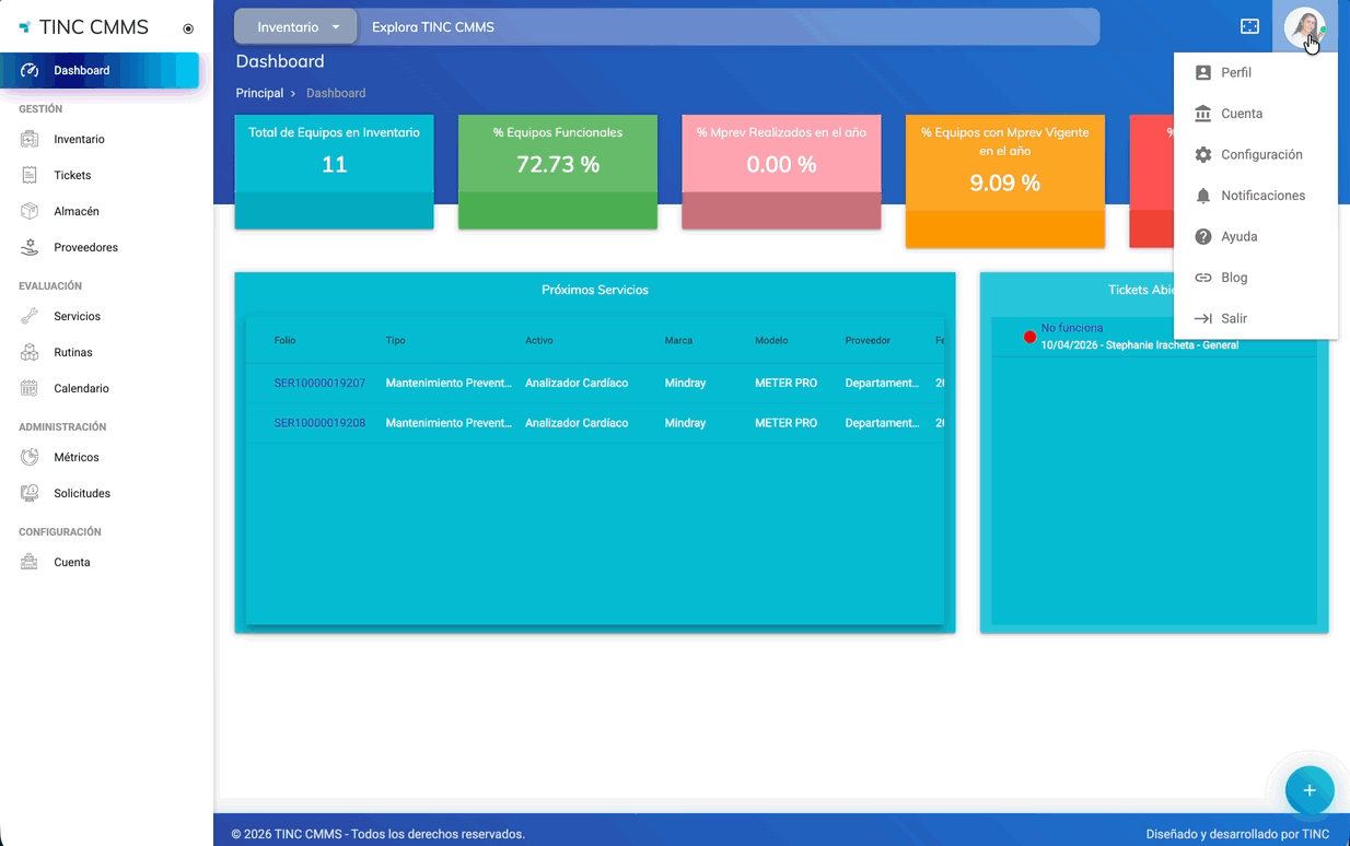Paso 1. Inicia sesión en tu cuenta de TINC CMMS IS.